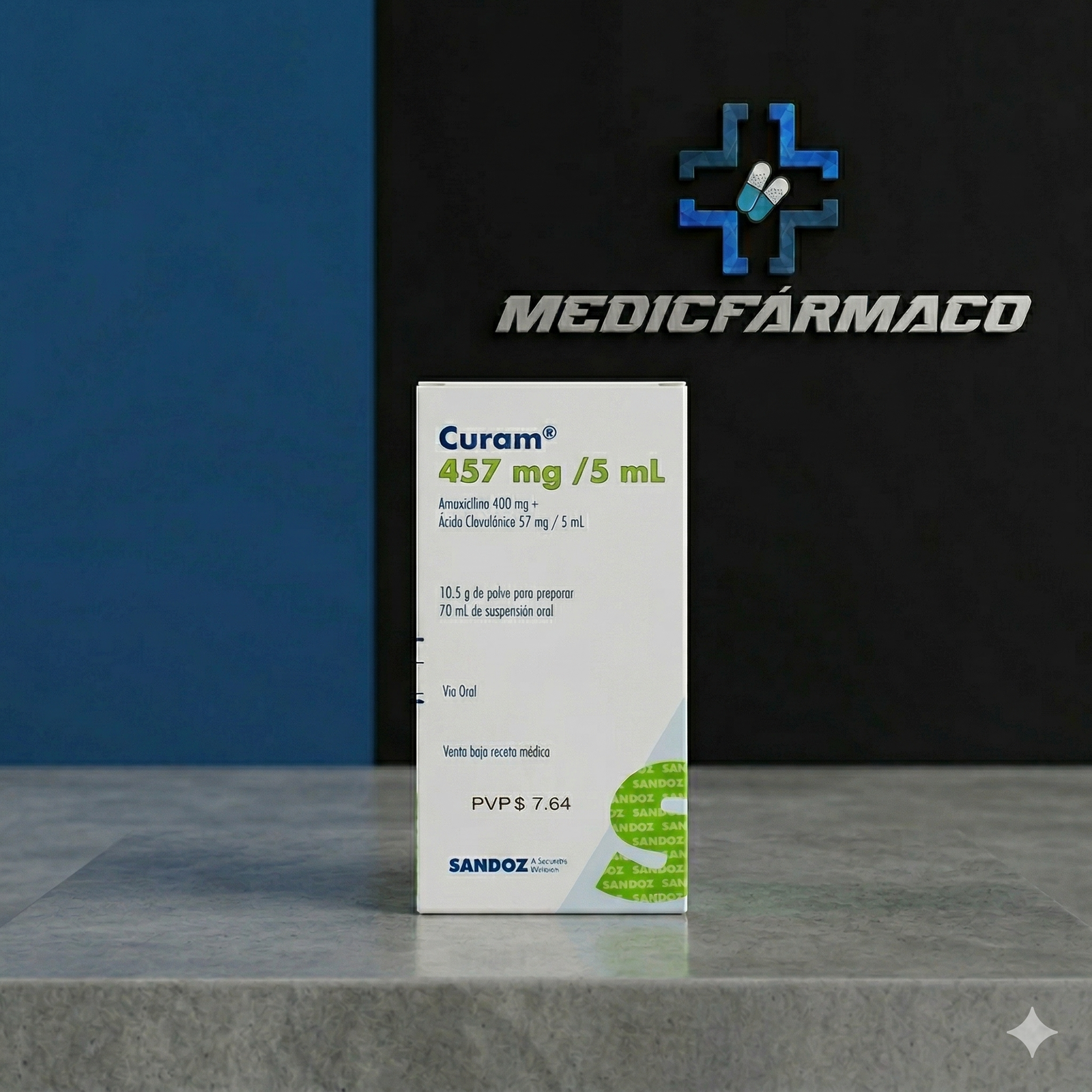 Contiene Amoxicilina: 400mg+ Ácido clavulánico: 57mg-5ml 10.5 g de polvo para preparar y 70ml de suspensión oral