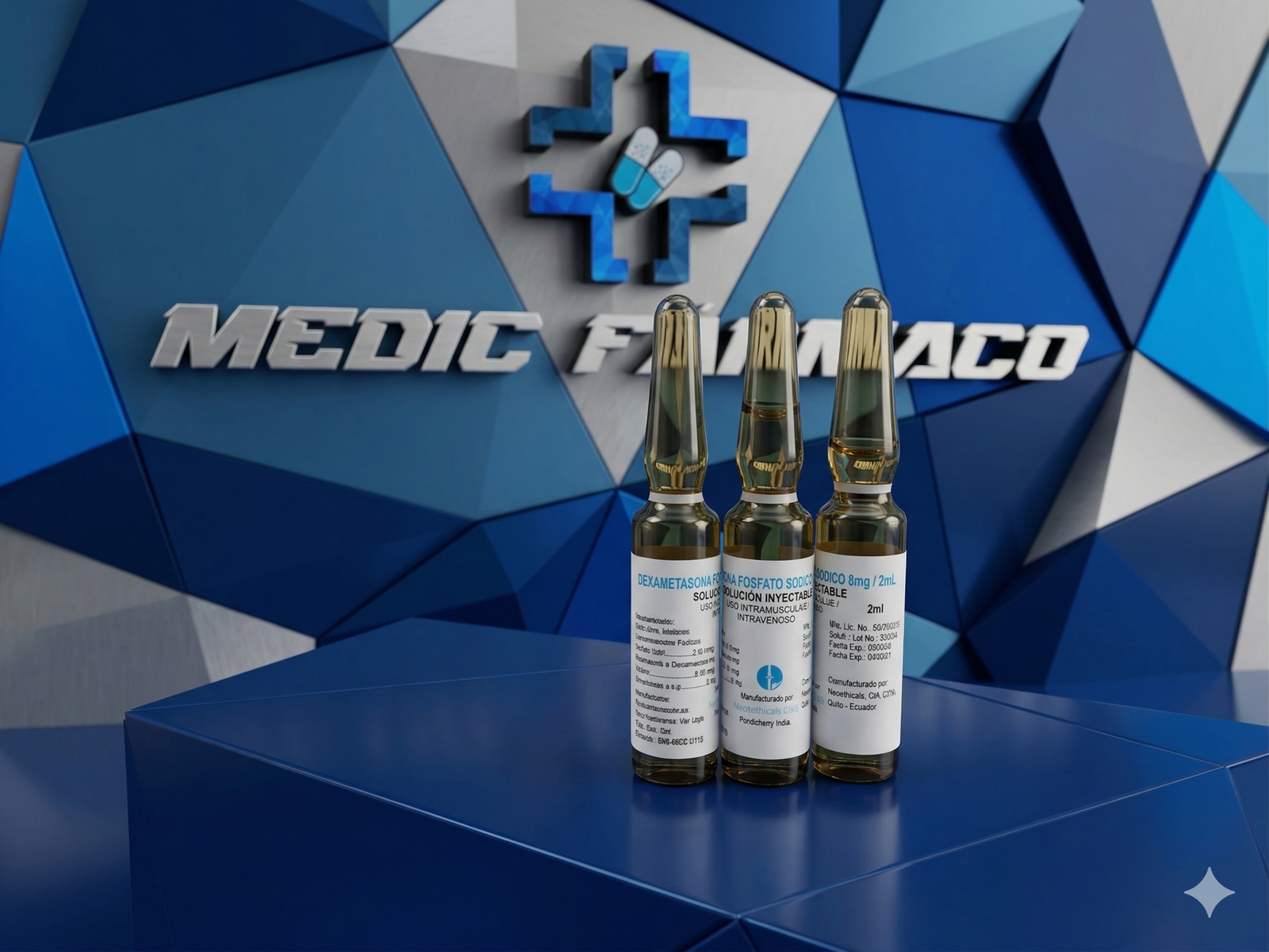 Cada 2ml contiene Dexametasona fosfato sódicoUSP: 9,016mg  equivalente a                      Dexametasona fosfato: 8mg