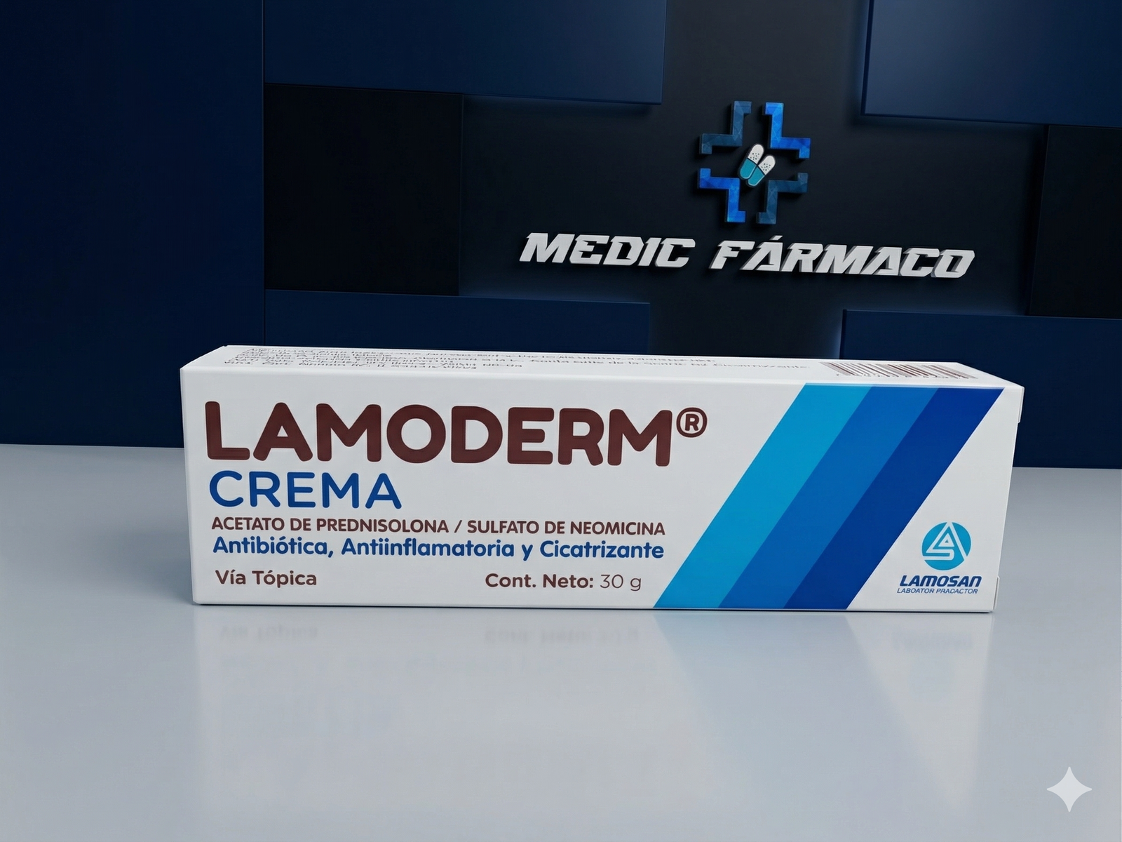 Cada 100g contiene Acetato de Prednisolona: 0,5g Sulfato de Neomicina: 0,5g