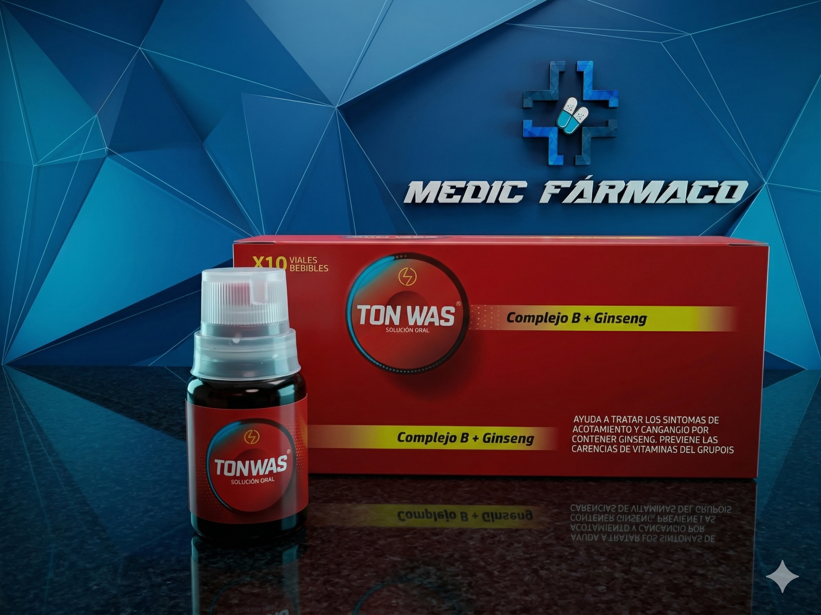 Complejo B+Ginseng. Cada víal bebible contiene Vitamina B1, Vitamina B2, Vitamina B6, Vitamina B12, Vitamina PP.